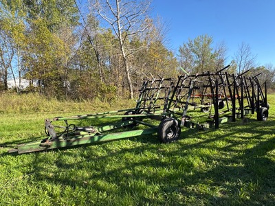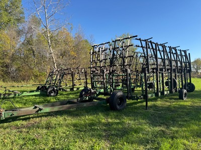 Summers 55’ multiweeder Summers 55’ multiweeder, 3-rank retractable Danish tines, 4-bar harrow sections, 14L-16.1 fronts, SN#22444 |